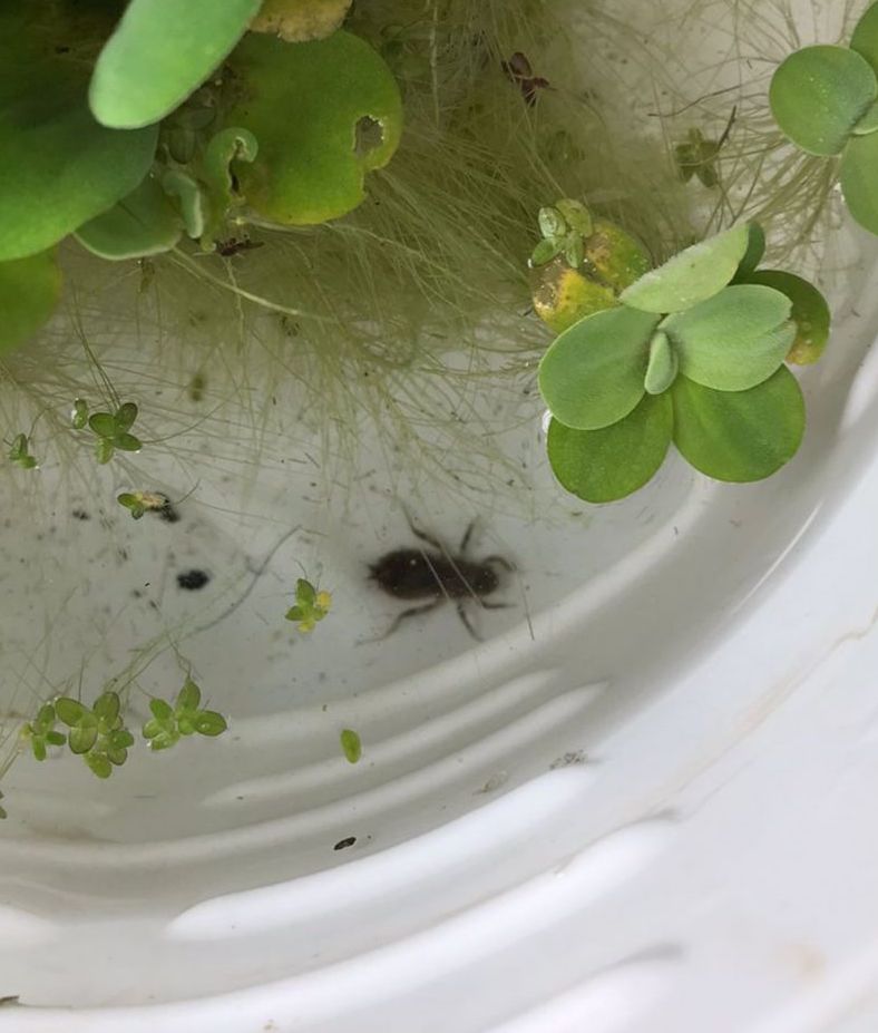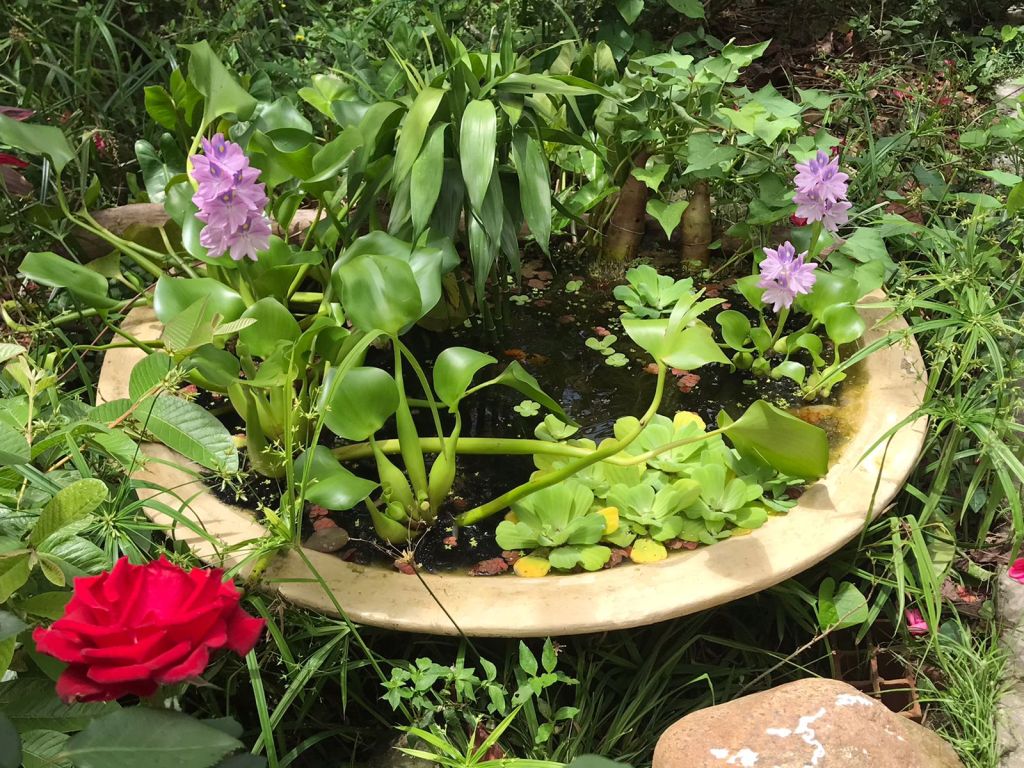 Eles vêm, bagunçam as plantas, fazem cocô na água, mas são ótimos — comem mosquitos. Eles podem botar ovos e os girinos saem, mas nem sempre sobrevivem, pois, pode haver predadores, como os besouros subaquáticos e as ninfas libélulas.